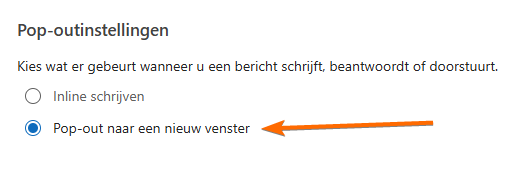 Kies hier voor: "Pop-out naar een nieuw venster" en kies onderin voor "Opslaan" om de wijziging op te slaan.